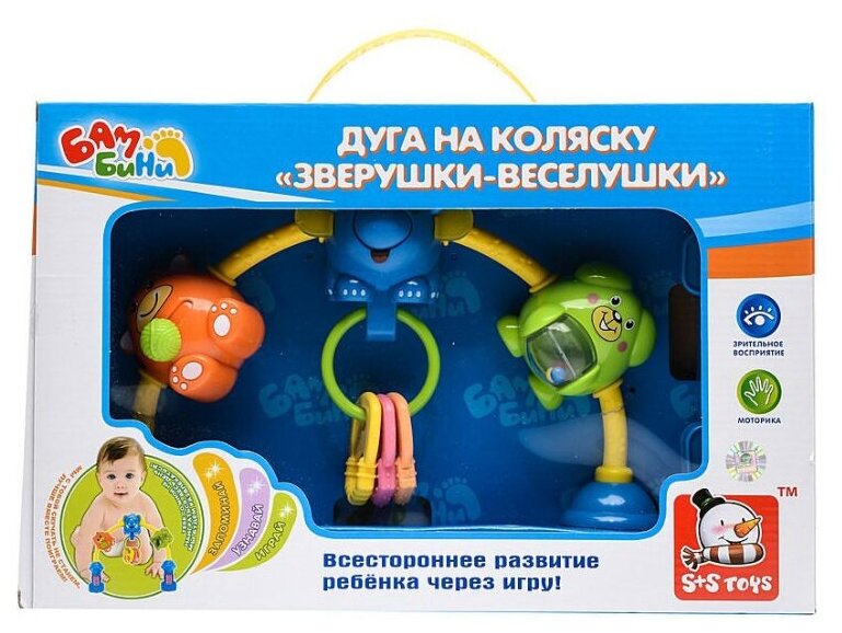 Type: arc, effects: sound, light, educational elements: teether, rustling and crunchy elements, material: plastic