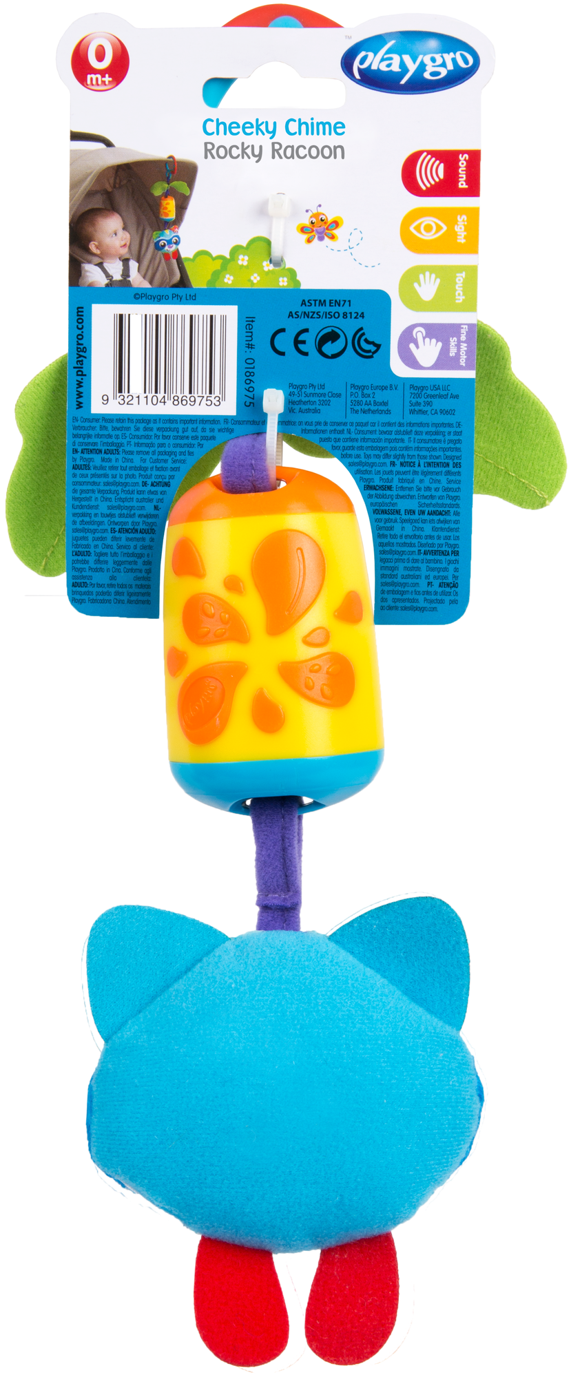 Type: hanging toy, effects: sound, educational elements: bell, tactile inserts, material: plastic, textile