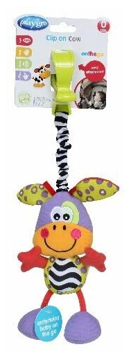Type: hanging toy, effects: sound, educational elements: rattle, tactile inserts, material: plastic, textile
