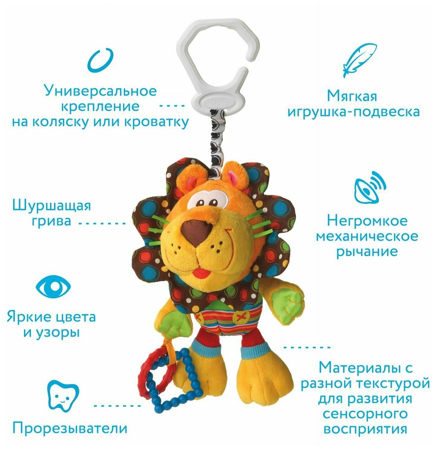 Type: hanging toy, effects: sound, educational elements: tactile inserts, rustling and crunchy elements, material: plastic, textile