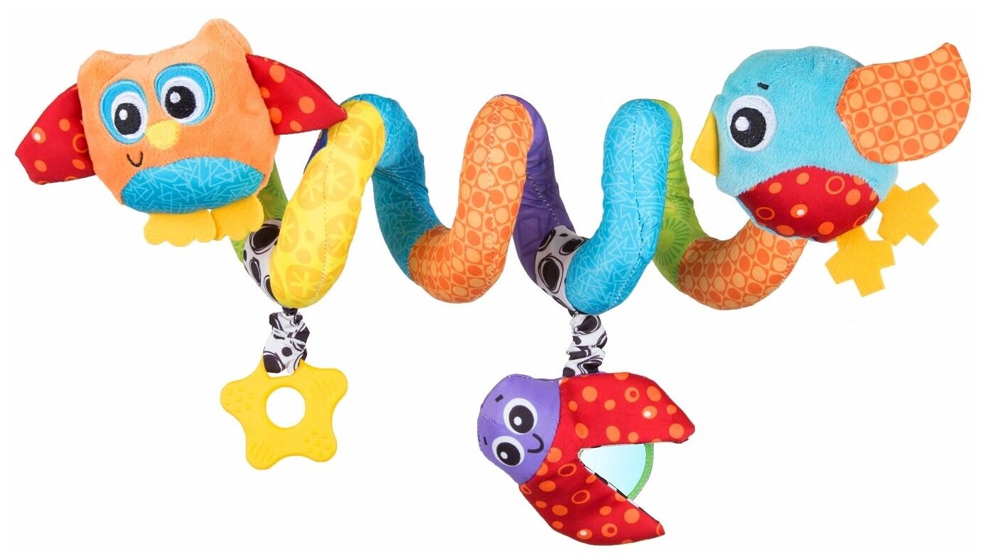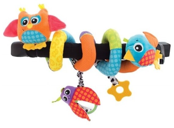 Type: hanging toy, effects: sound, educational elements: mirror, rattle, teether, tactile inserts, rustling and crunchy elements, material: plastic, textile
