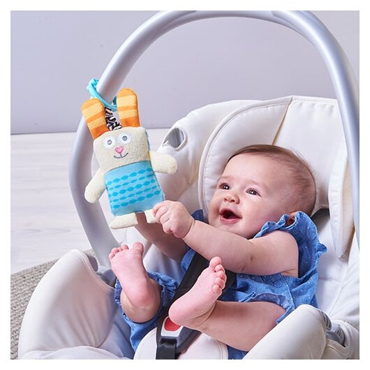 Type: hanging toy, effects: vibration, sound, educational elements: rattle, material: plastic, textile