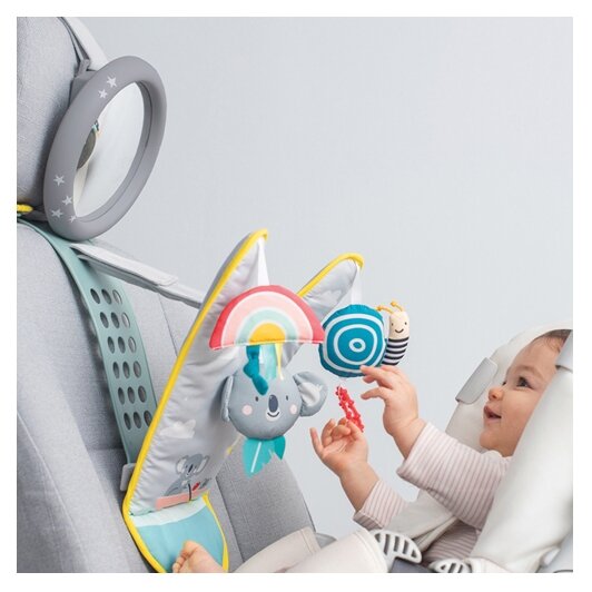 Type: hanging toy, effects: sound, educational elements: mirror, bell, teether, tactile inserts, rustling and crispy elements, material: plastic, textile
