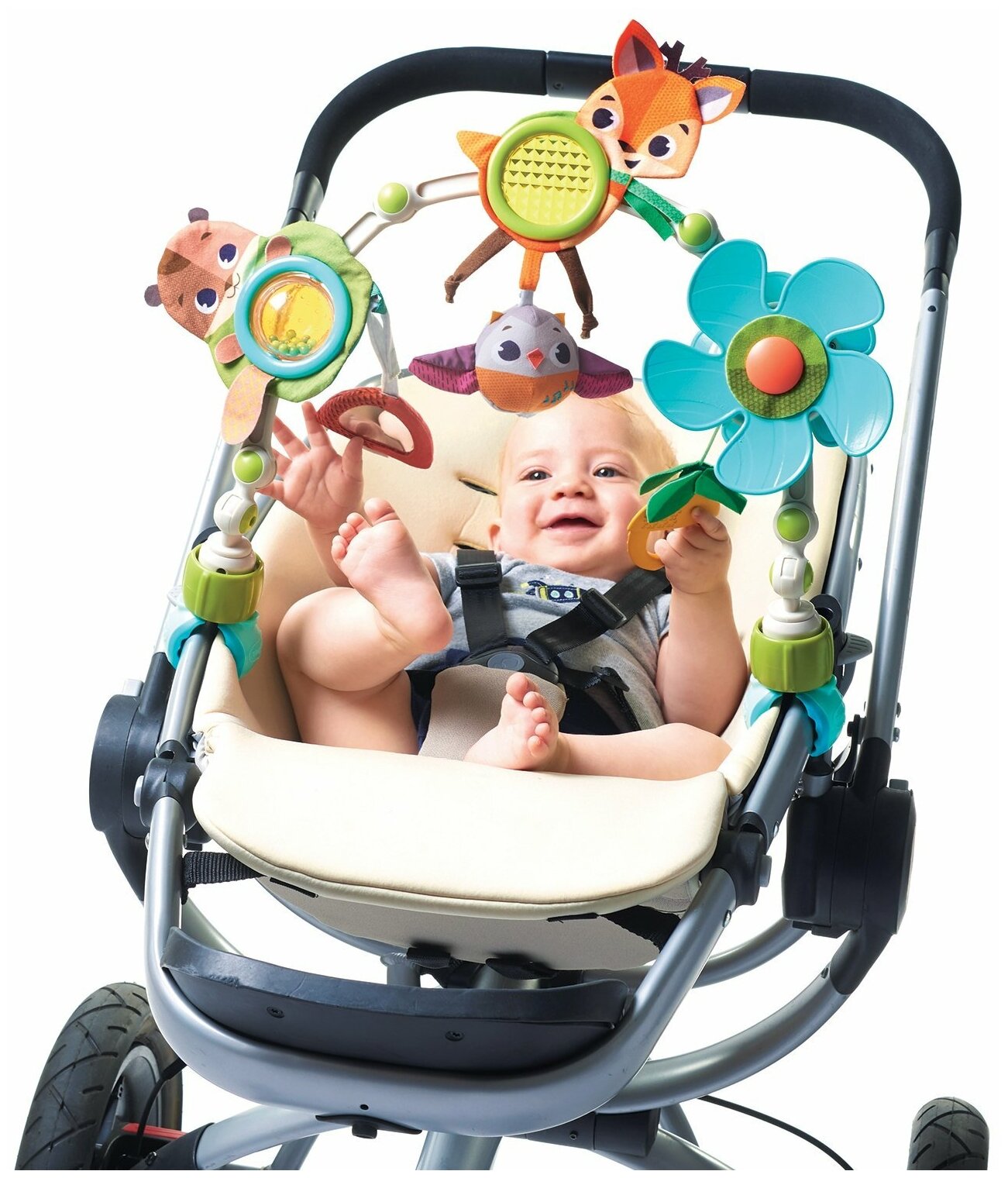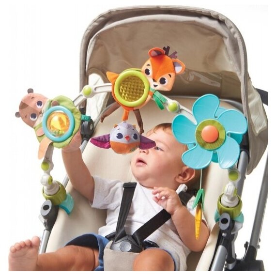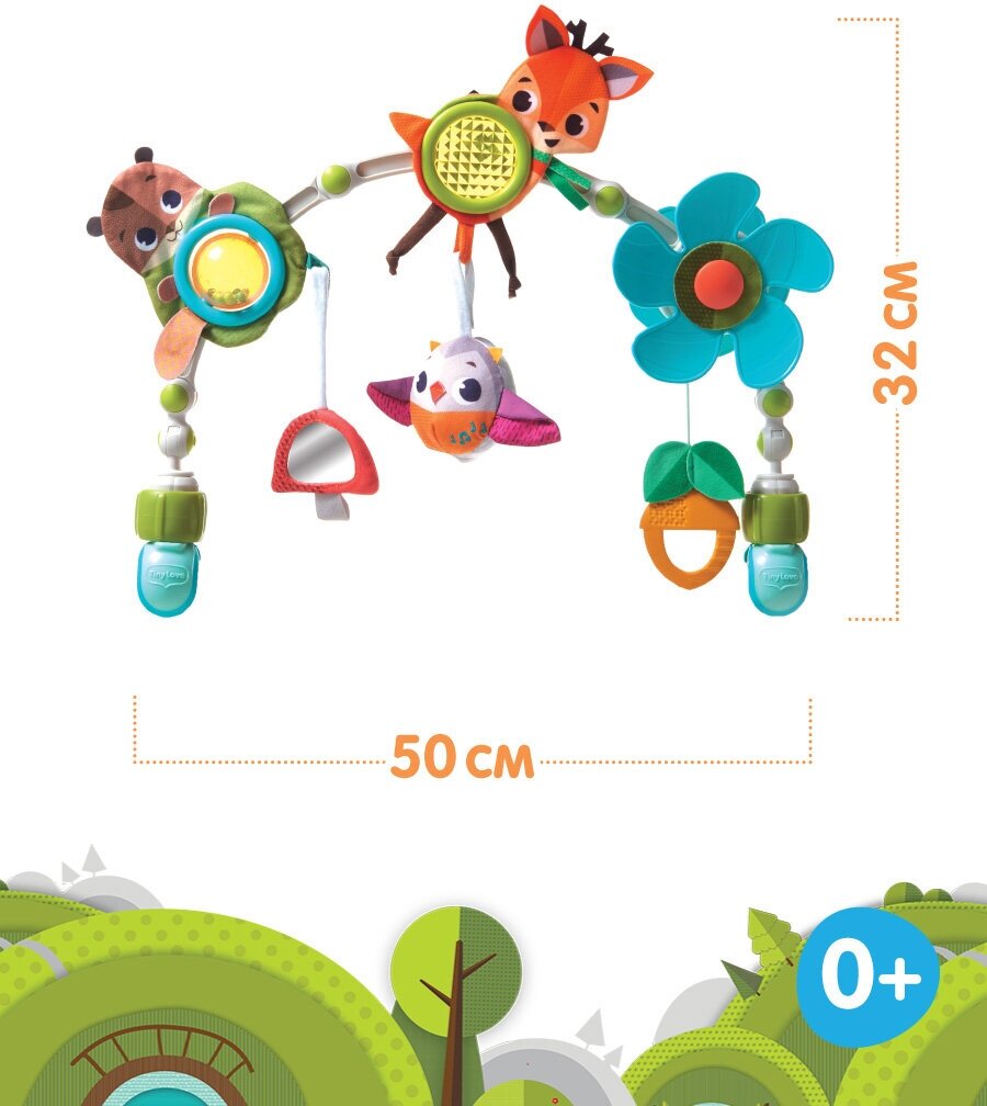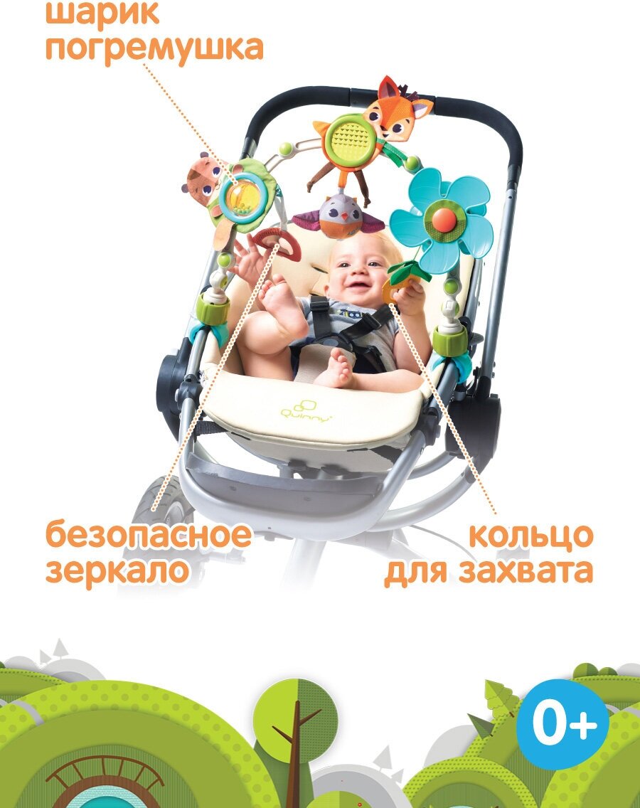 Type: arc, effects: sound, educational elements: mirror, rattle, teether, material: plastic, textile