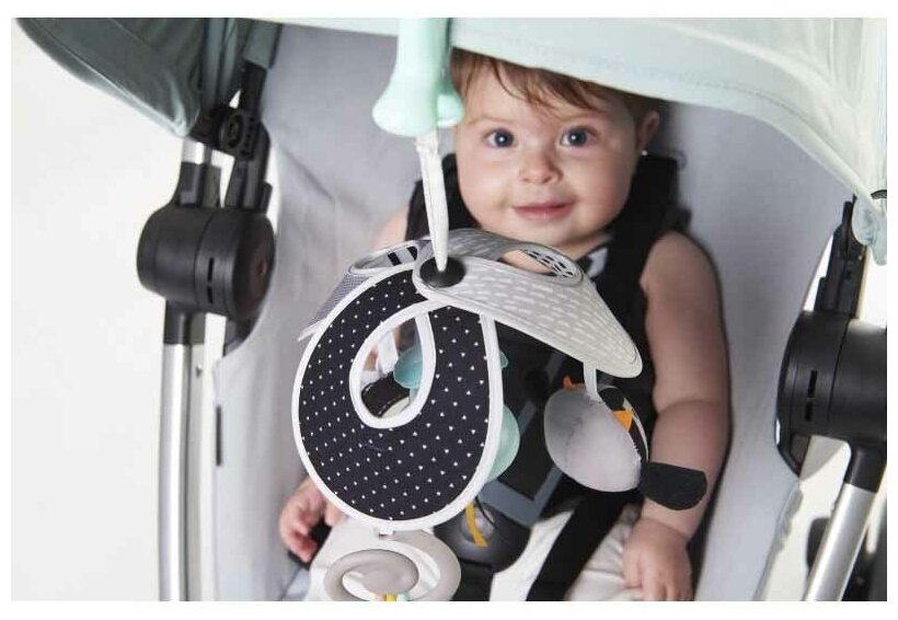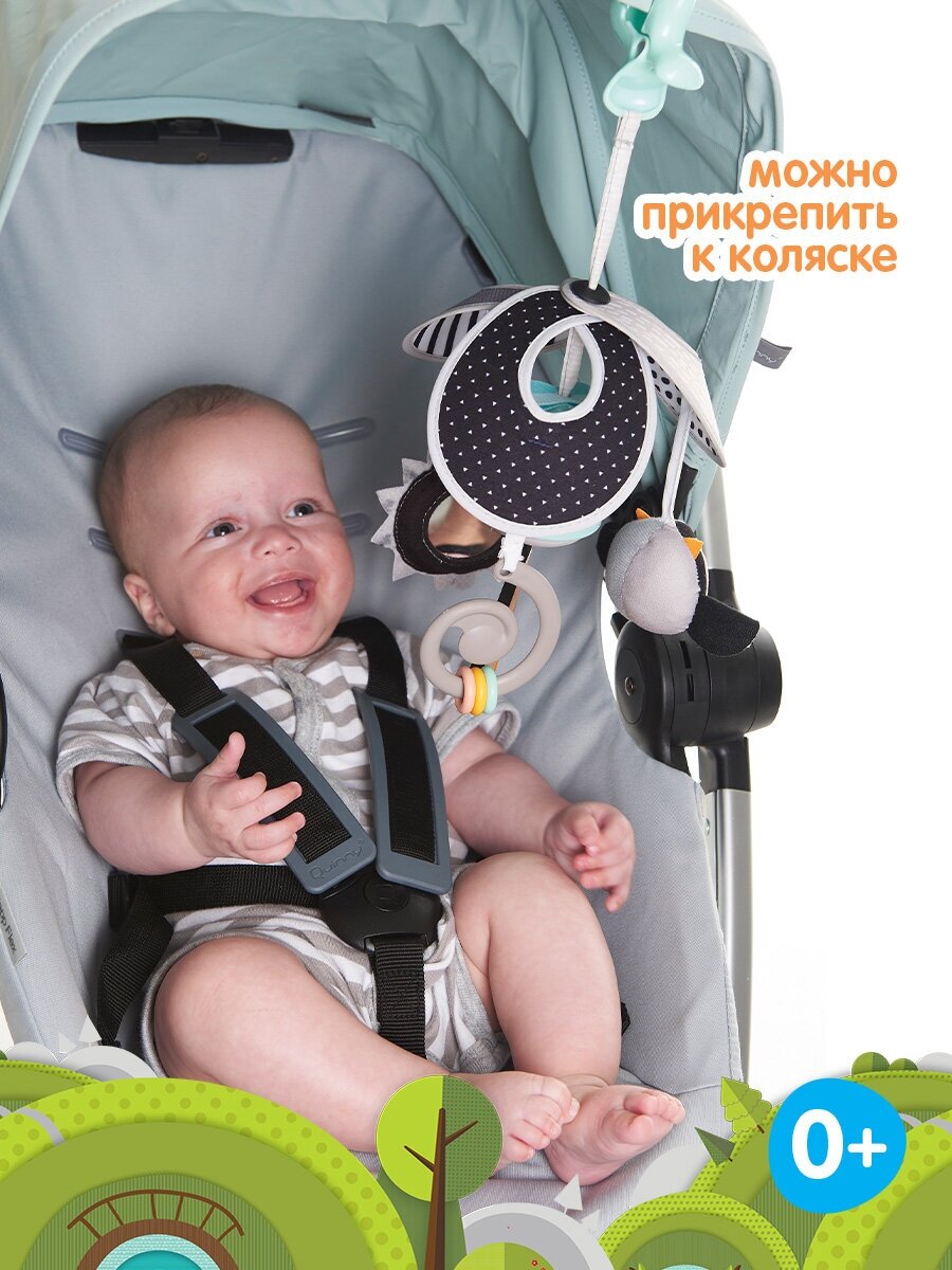 Type: hanging toy, effects: sound, educational elements: mirror, bell, rattle, teether, material: textile