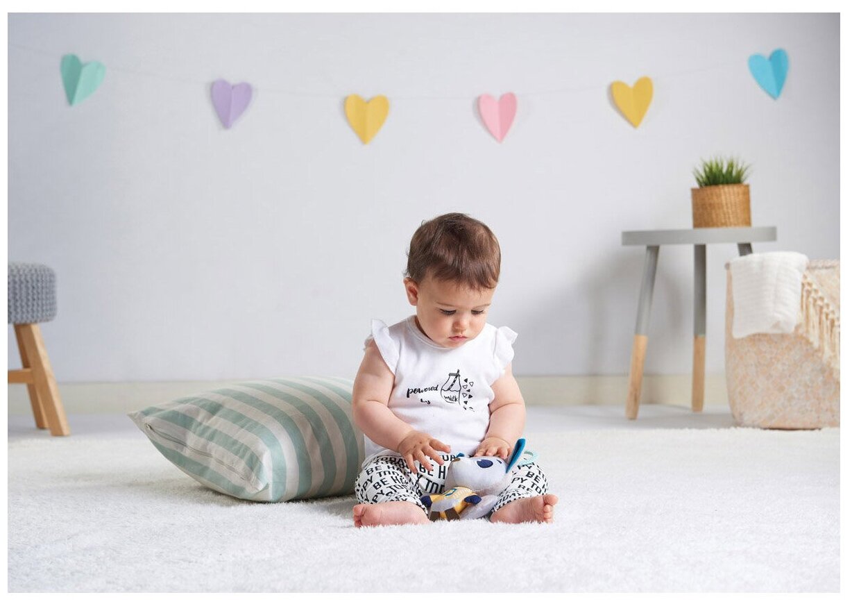 Type: hanging toy, effects: sound, educational elements: tactile inserts, material: textile