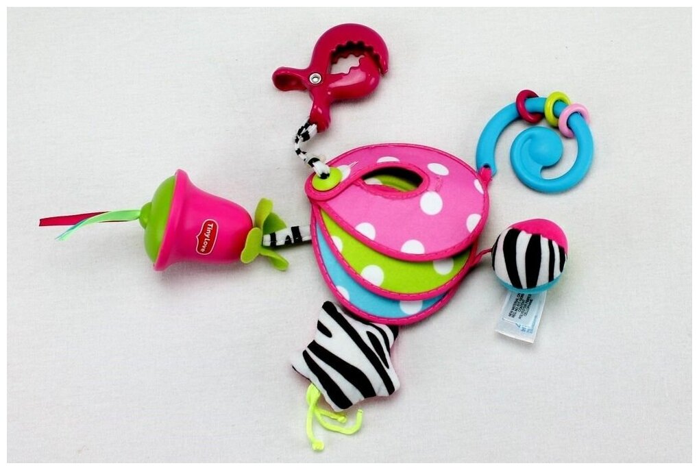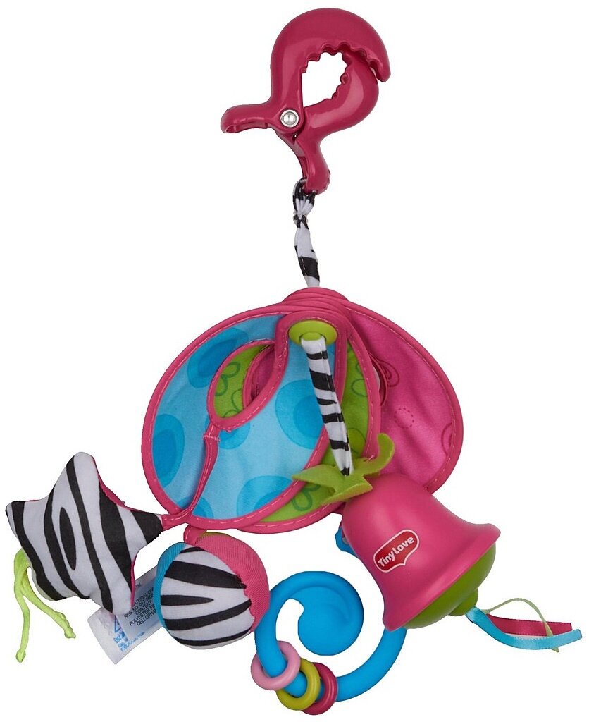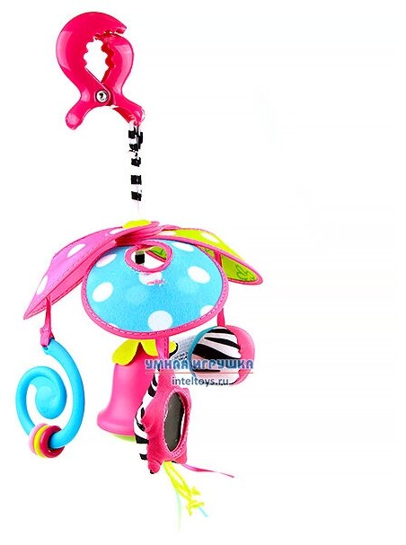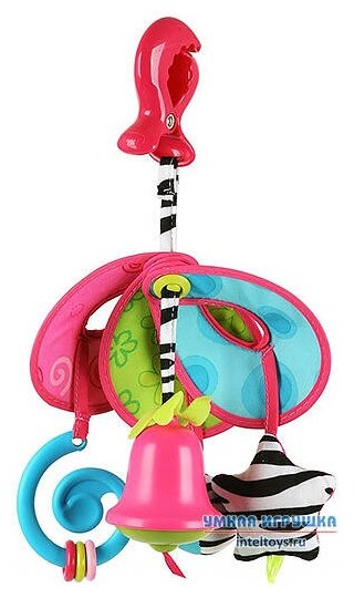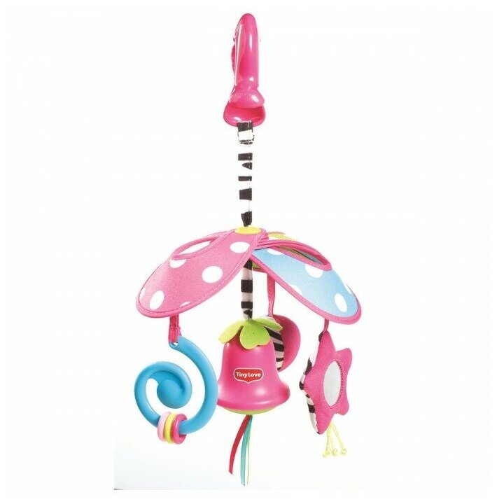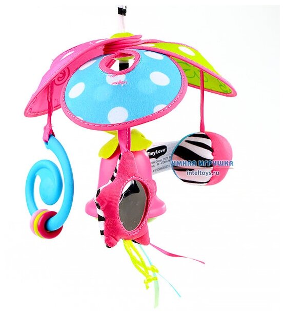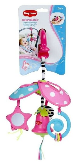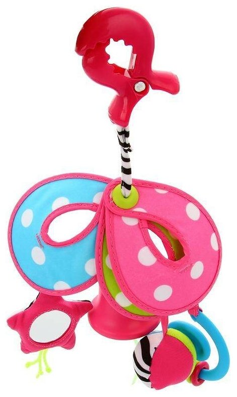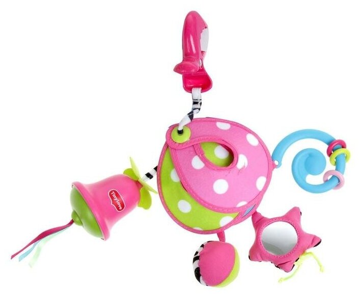 Type: hanging toy, effects: sound, educational elements: mirror, bell, rattle, teether, tactile inserts, rustling and crunchy elements, material: plastic, textile