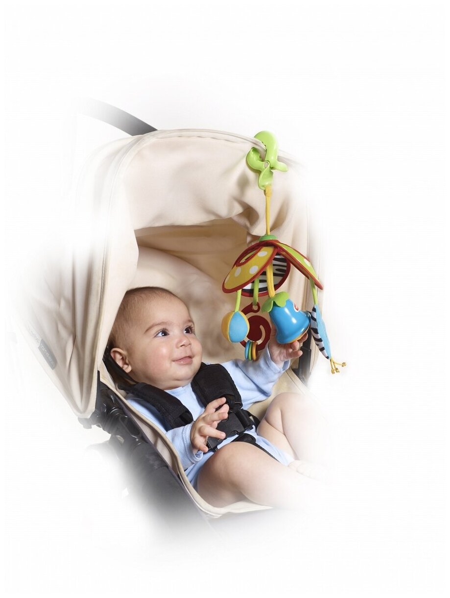 Type: hanging toy, effects: sound, educational elements: mirror, bell, rattle, teether, tactile inserts, rustling and crunchy elements, material: plastic, textile