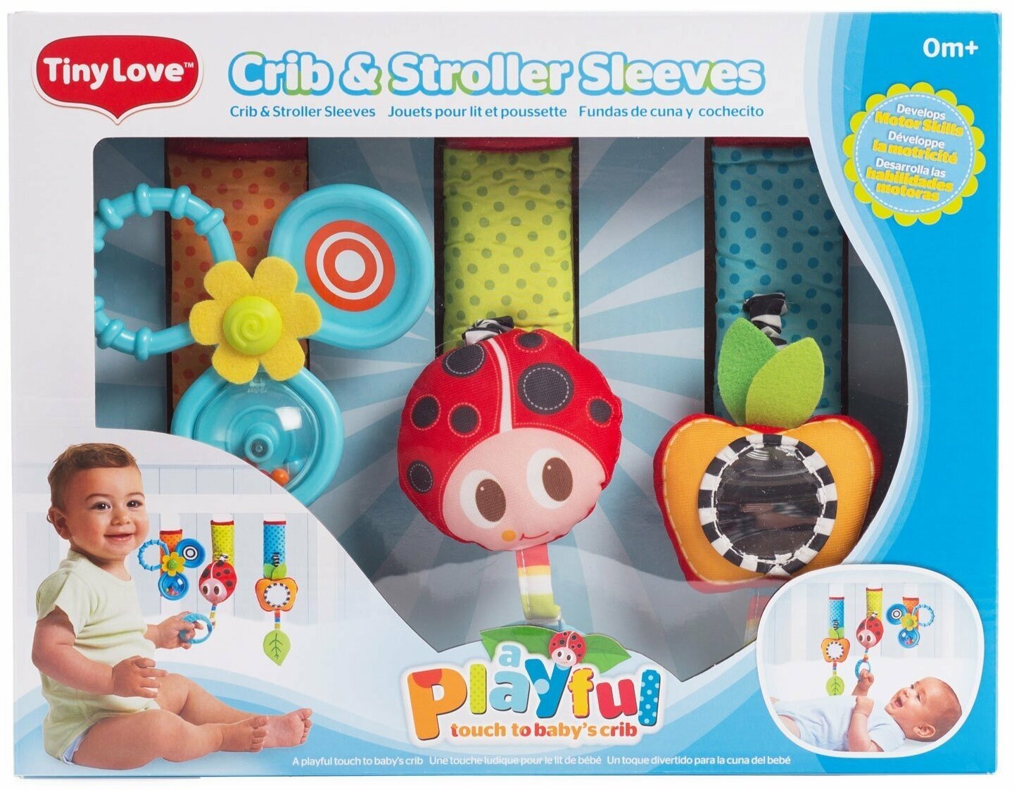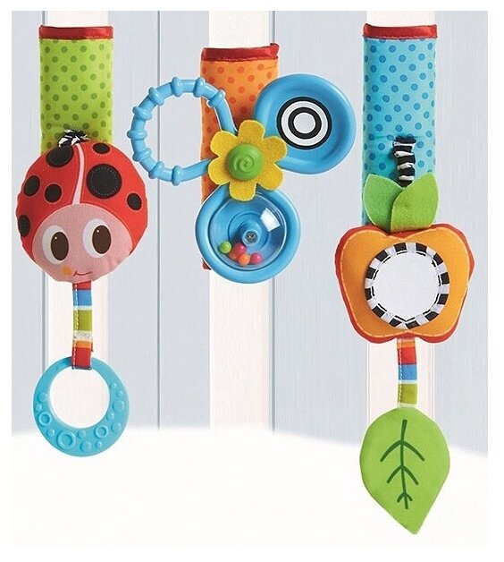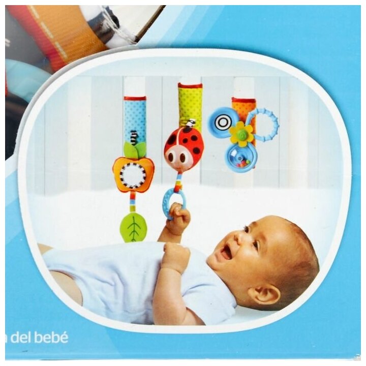 Type: set, effects: vibration, sound, educational elements: mirror, rattle, teether, tactile inserts, rustling and crispy elements, material: plastic, textile