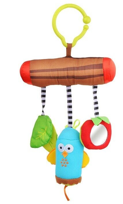 Type: hanging toy, effects: sound, educational elements: mirror, bell, tactile inserts, rustling and crispy elements, material: plastic, textile