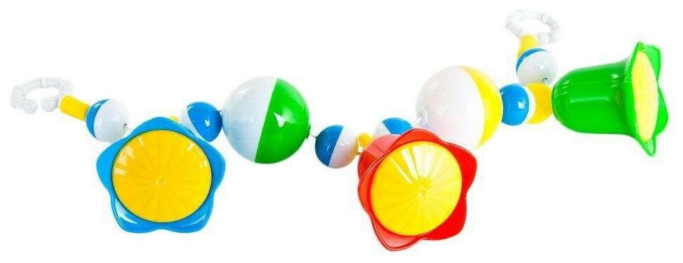 Type: stretching, effects: sound, educational elements: bell, rattle, material: plastic