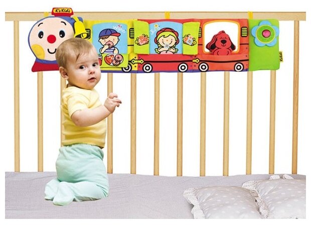 Type: hanging toy, effects: sound, educational elements: mirror, rattle, tactile inserts, rustling and crunchy elements, material: textile