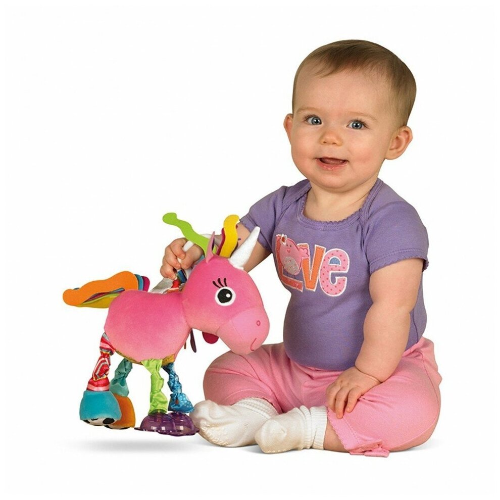 Type: hanging toy, effects: sound, educational elements: squeaker, rattle, tactile inserts, rustling and crunchy elements, material: plastic, textile