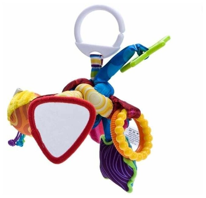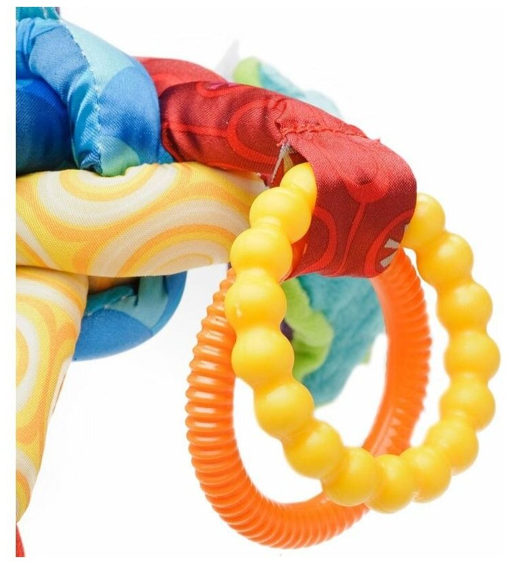 Type: hanging toy, effects: sound, educational elements: mirror, squeaker, rattle, teether, tactile inserts, material: plastic, textile