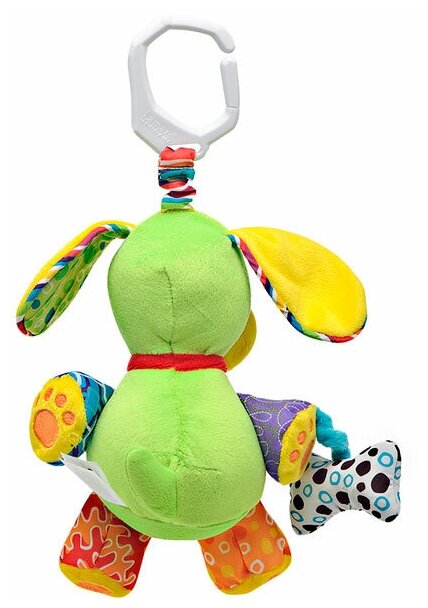 Type: hanging toy, effects: sound, educational elements: squeaker, rattle, tactile inserts, rustling and crunchy elements, material: plastic, textile