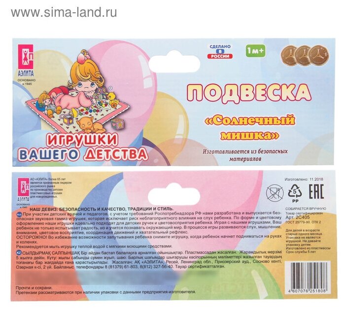 Type: hanging toy, effects: sound, educational elements: rattle, material: plastic
