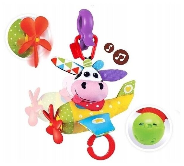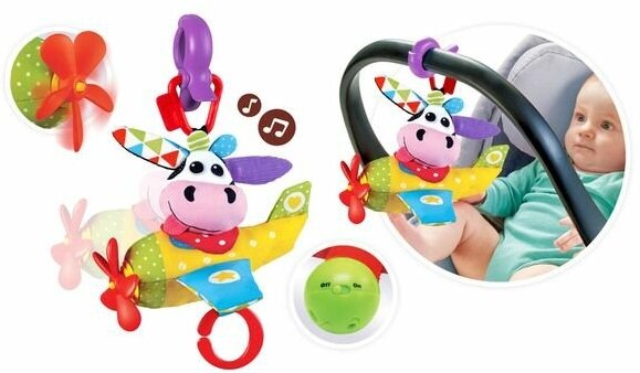 Type: hanging toy, effects: sound, educational elements: tactile inserts, material: plastic, textile