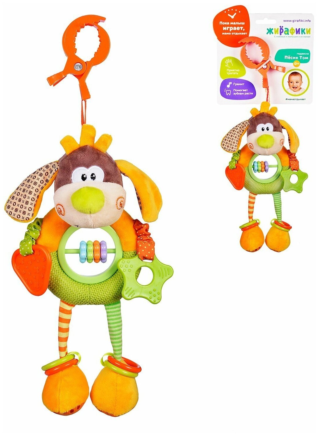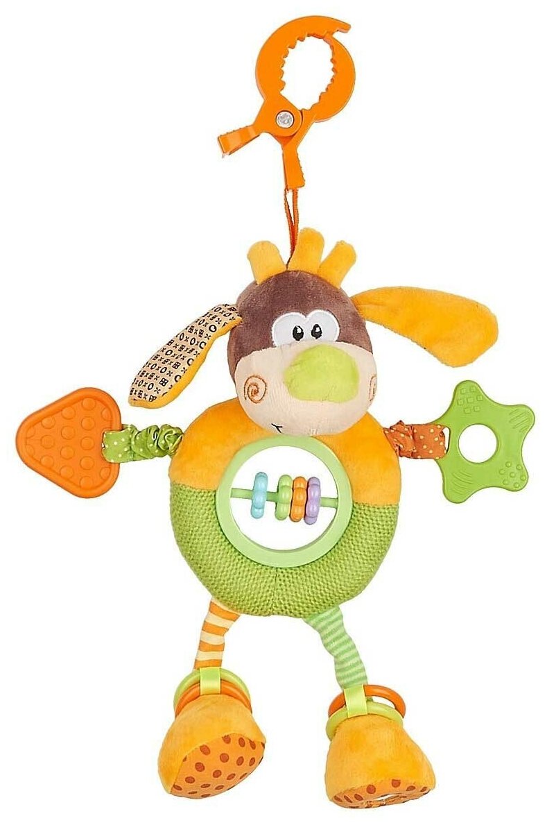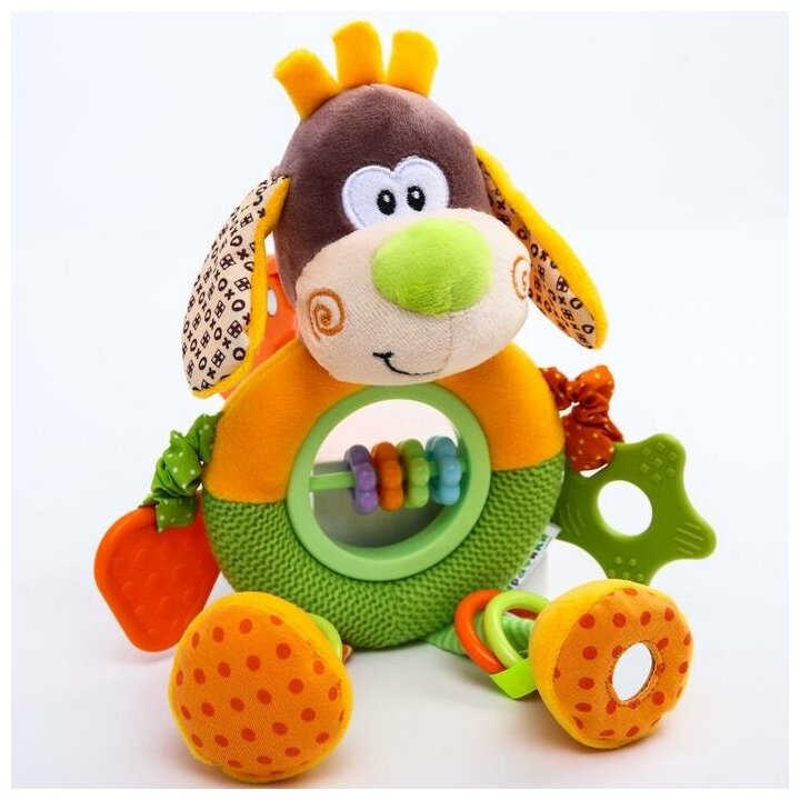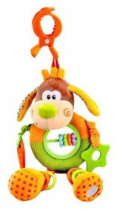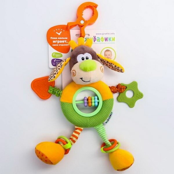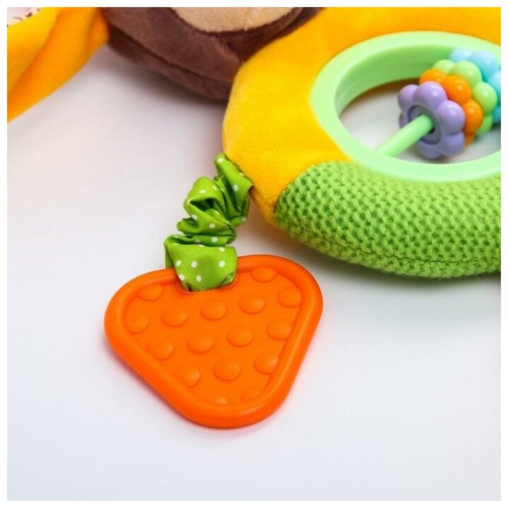Type: hanging toy, effects: sound, educational elements: mirror, rattle, teether, tactile inserts, rustling and crunchy elements, material: plastic, rubber, textile