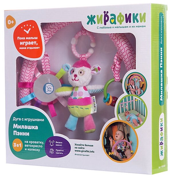 Type: arc, effects: sound, educational elements: mirror, bell, rattle, tactile inserts, material: plastic, textile