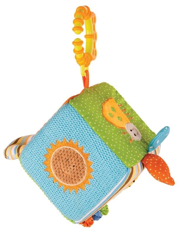 Type: hanging toy, effects: sound, educational elements: rattle, teether, tactile inserts, rustling and crunchy elements, material: plastic, textile