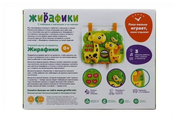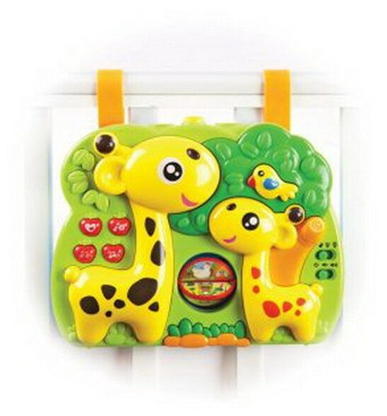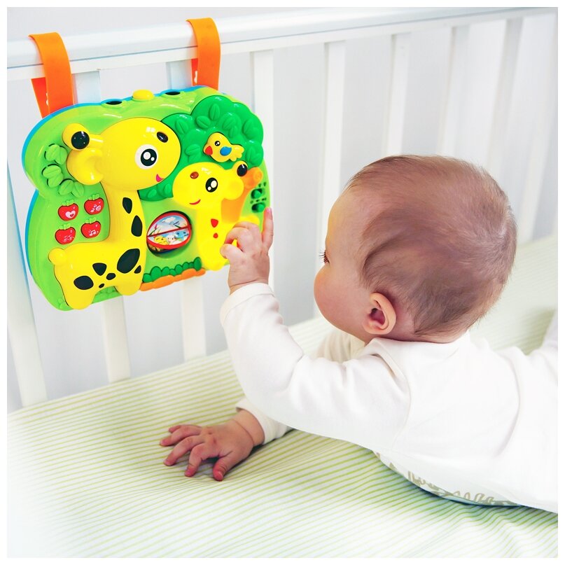 Type: hanging toy, effects: sound, light, educational elements: tactile inserts, material: plastic, textile