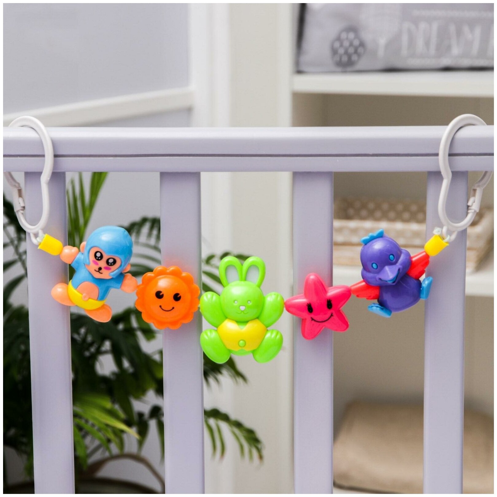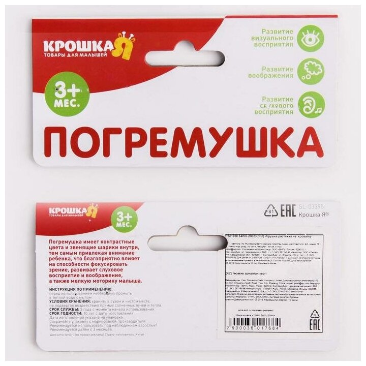 Type: stretching, effects: sound, educational elements: rattle, material: plastic