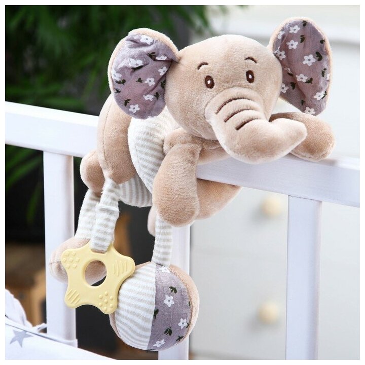 Stretching - soft spiral with a rattle on the bed / stroller Elephant Nyashka 2593670