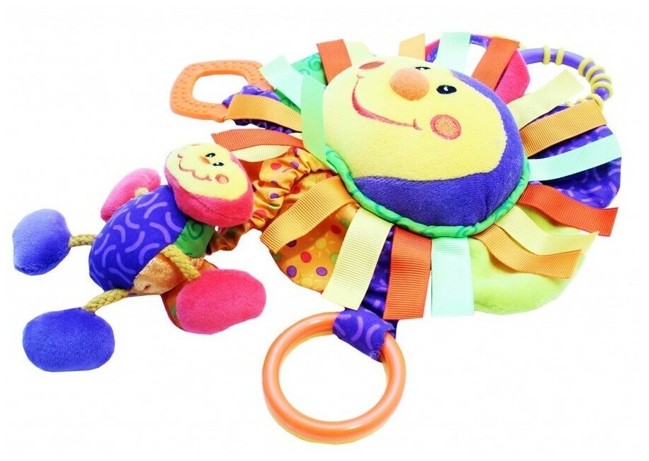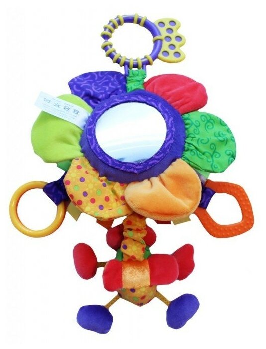 Type: hanging toy, effects: sound, educational elements: mirror, teether, tactile inserts, rustling and crispy elements, material: plastic, textile
