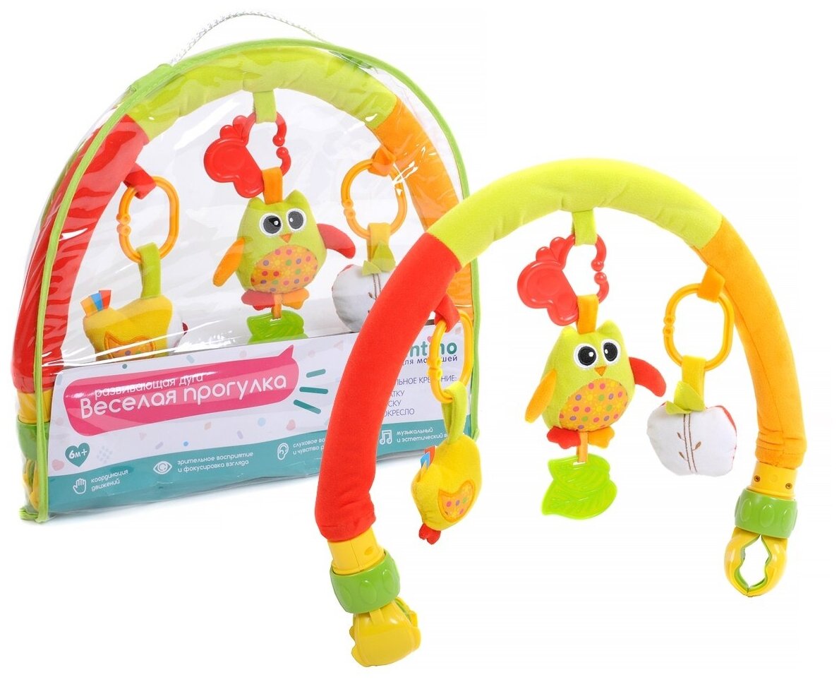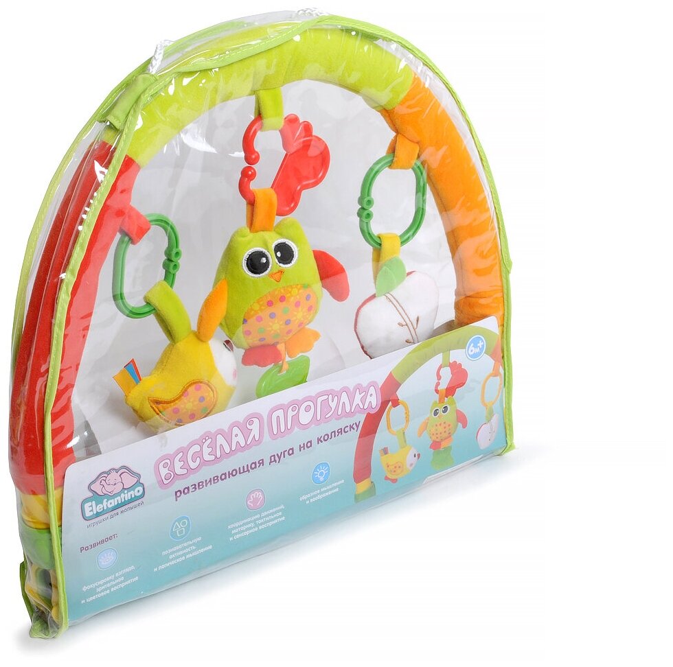 Type: arc, effects: sound, educational elements: rattle, teether, material: plastic, textile