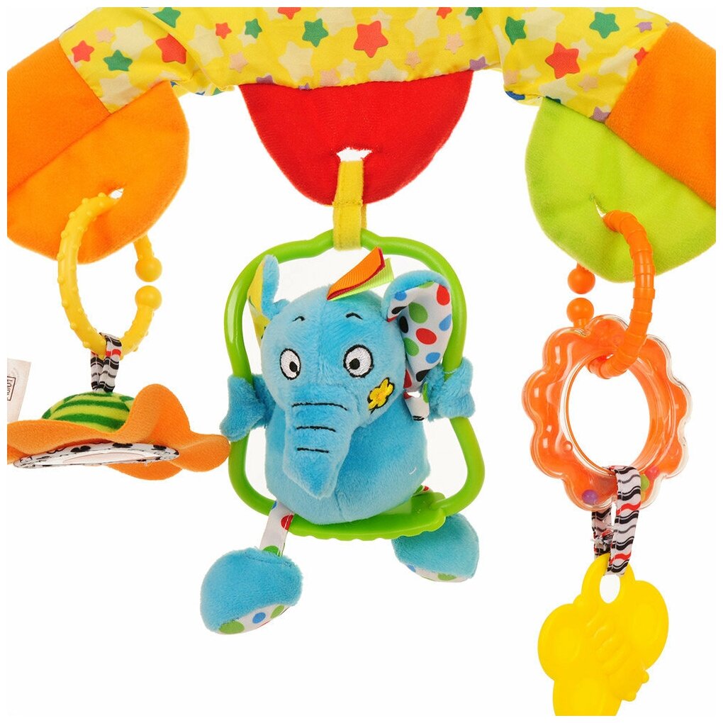 Type: arc, effects: sound, educational elements: mirror, rattle, teether, tactile inserts, material: plastic, textile