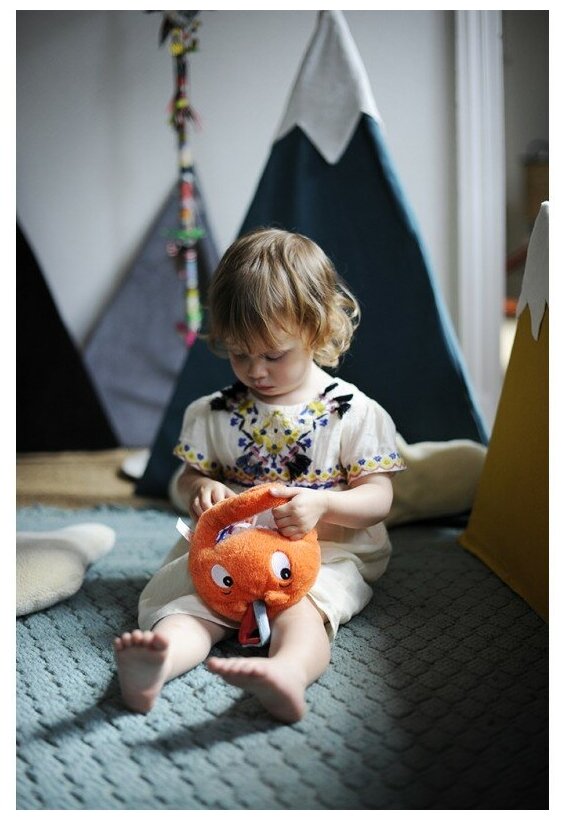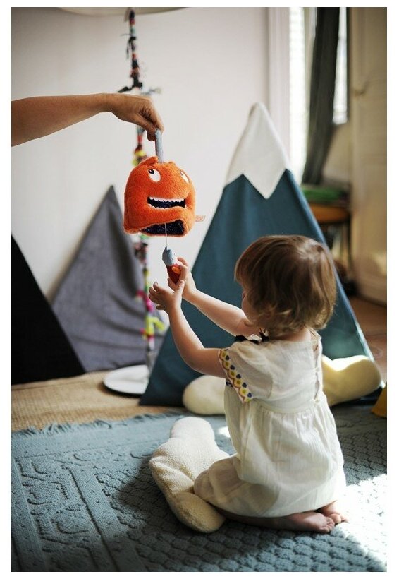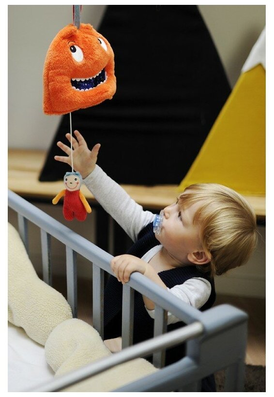 Type: hanging toy, effects: sound, educational elements: tactile inserts, material: textile