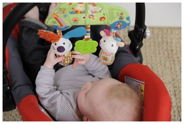 Type: hanging toy, effects: sound, educational elements: bell, teether, tactile inserts, material: plastic, textile