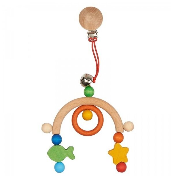 Type: hanging toy, educational elements: tactile inserts, material: wood, metal, plastic