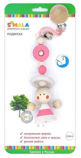 Type: hanging toy, effects: sound, educational elements: bell, tactile inserts, material: wood