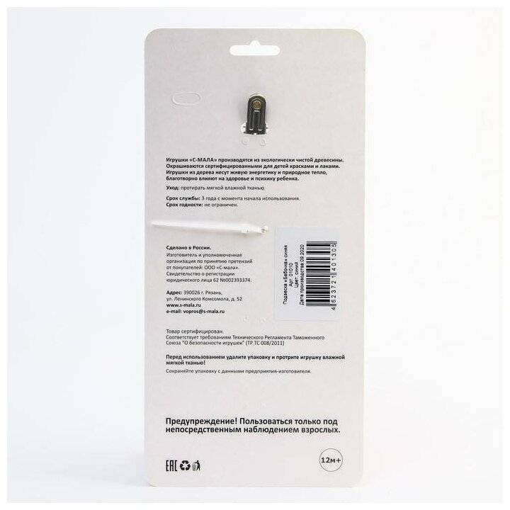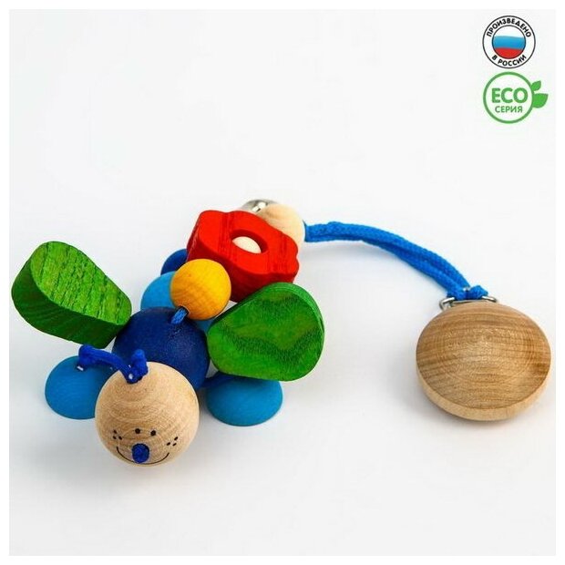 Type: hanging toy, effects: sound, educational elements: bell, tactile inserts, material: wood