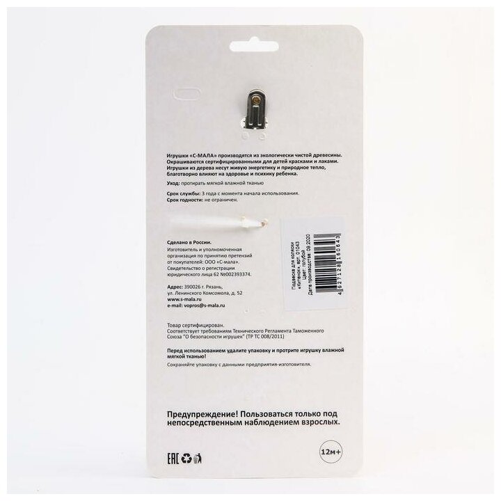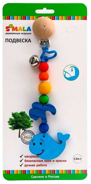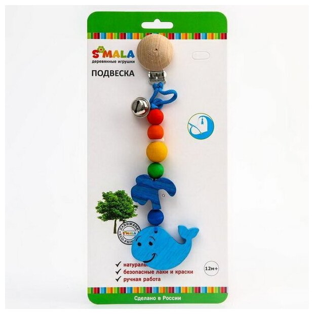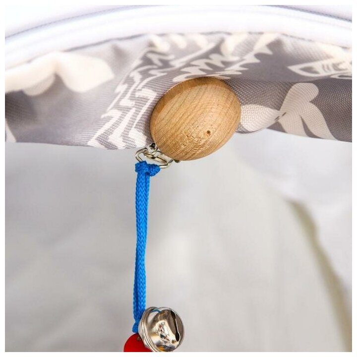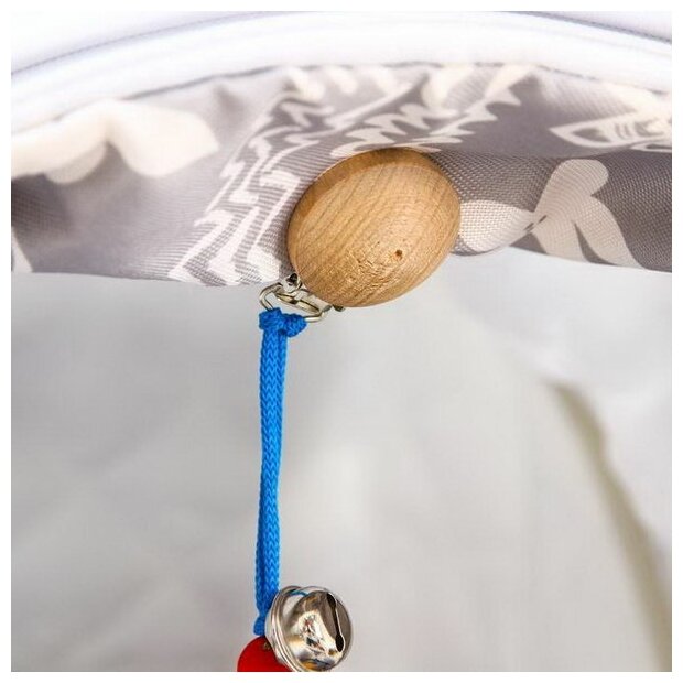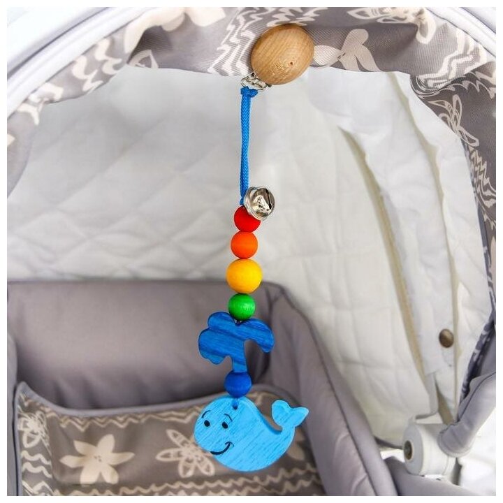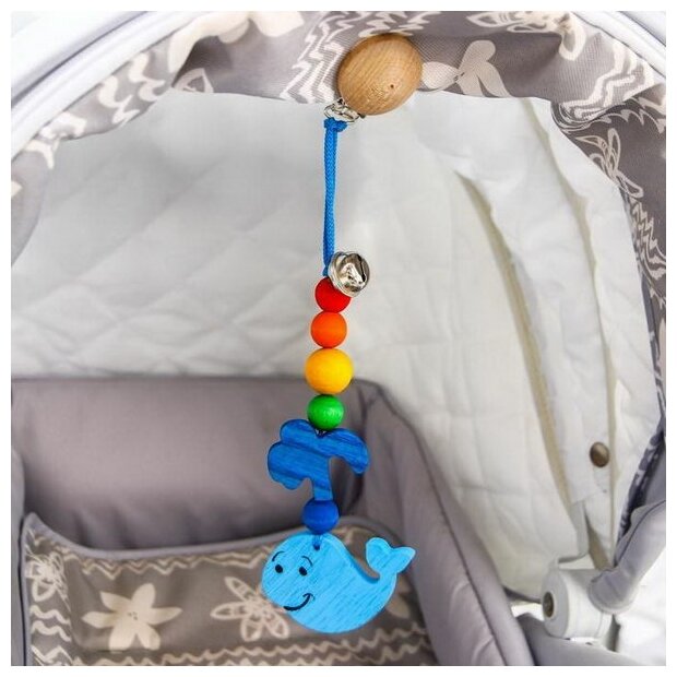 Type: hanging toy, effects: sound, educational elements: bell, tactile inserts, material: wood