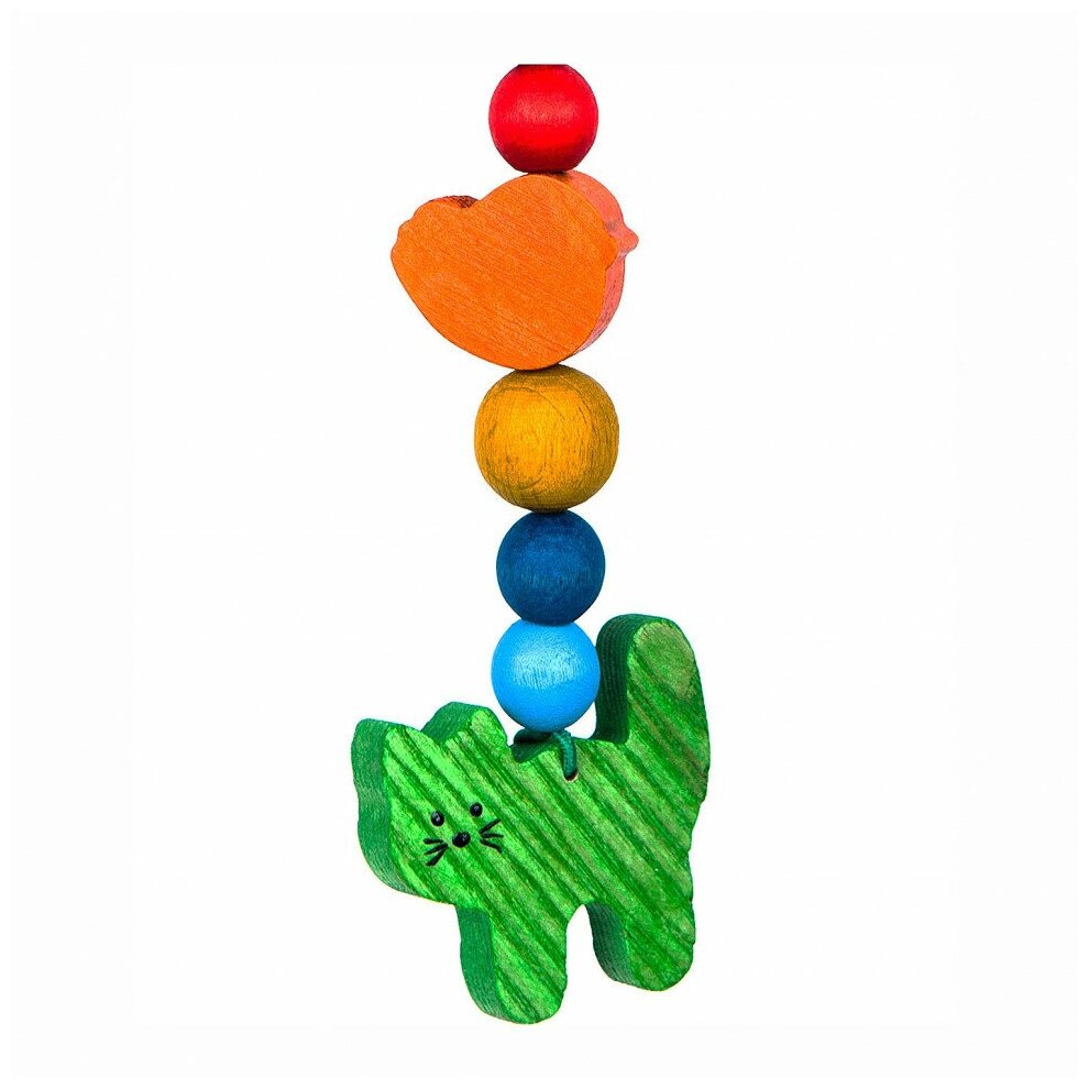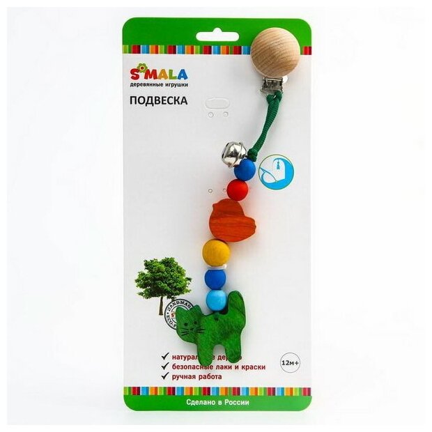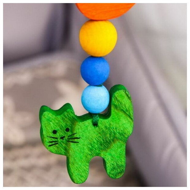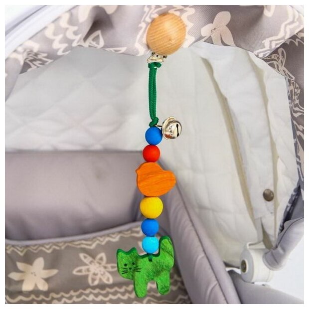 Type: hanging toy, effects: sound, educational elements: bell, tactile inserts, material: wood
