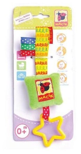 Type: hanging toy, effects: sound, educational elements: rattle, tactile inserts, rustling and crunchy elements, material: plastic, textile