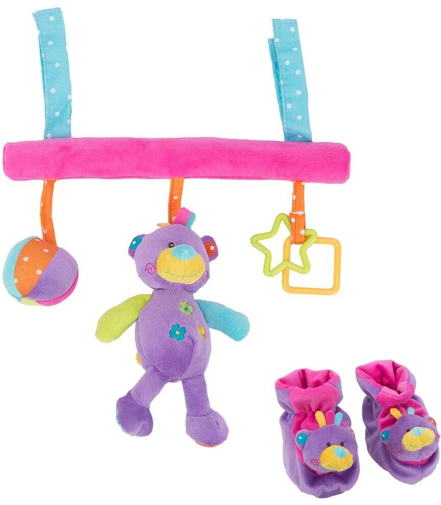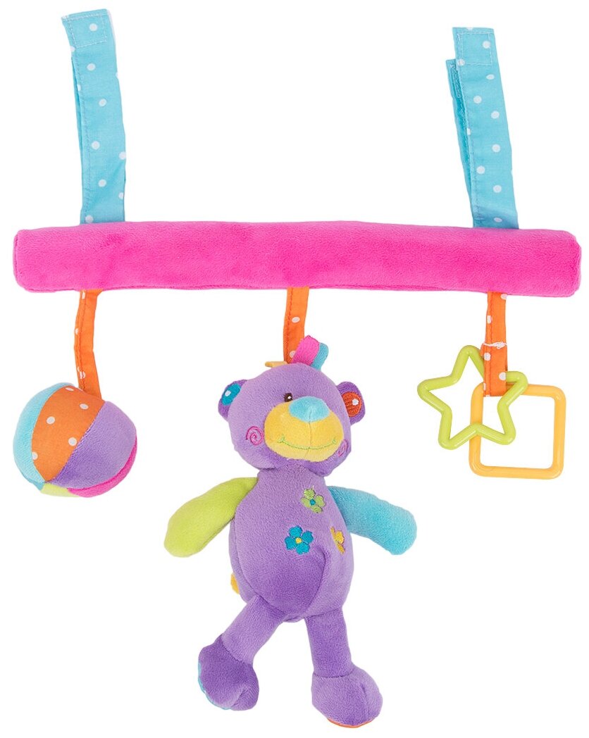 Type: hanging toy, effects: sound, educational elements: rattle, teether, tactile inserts, material: plastic, textile