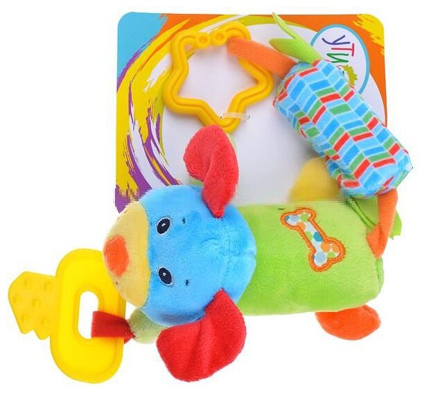 Type: hanging toy, effects: sound, educational elements: bell, rattle, teether, tactile inserts, material: plastic, textile