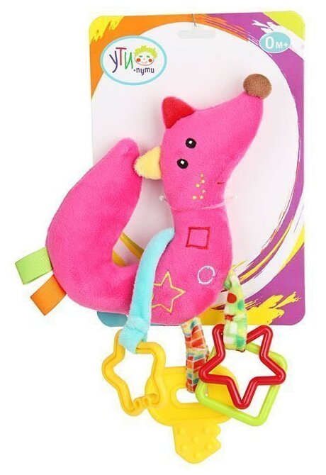 Type: hanging toy, effects: sound, educational elements: rattle, teether, tactile inserts, material: plastic, textile
