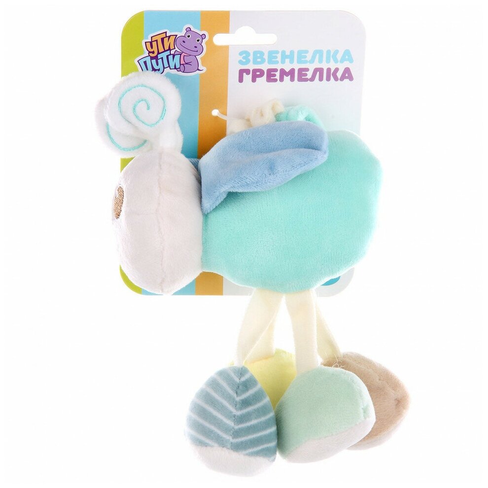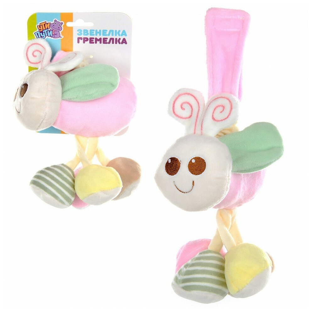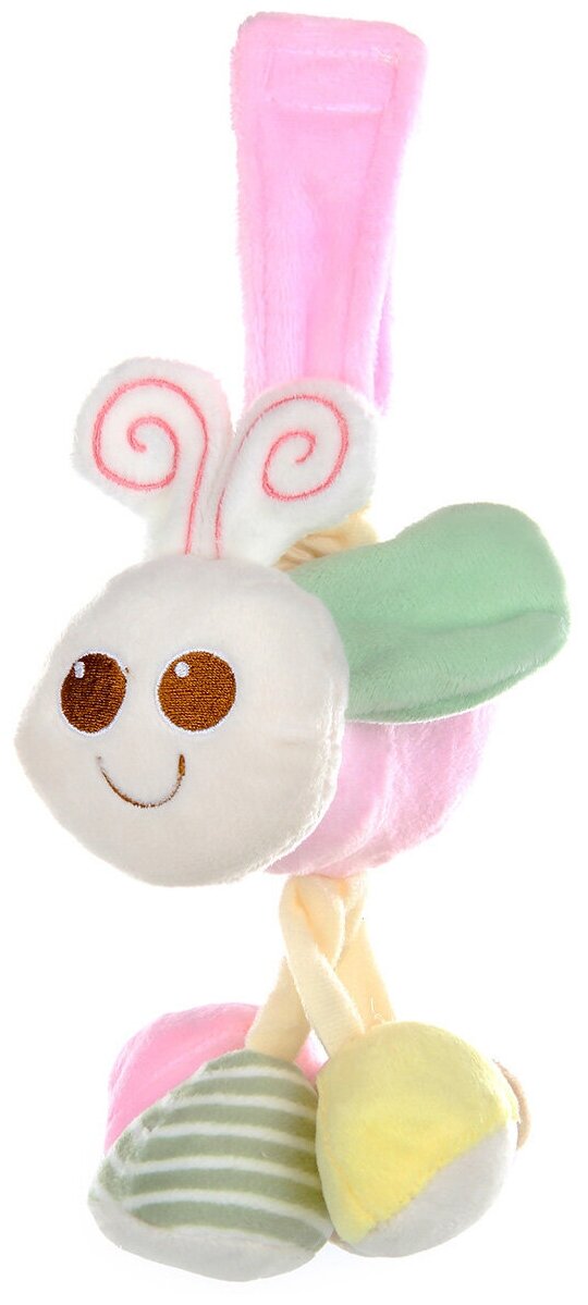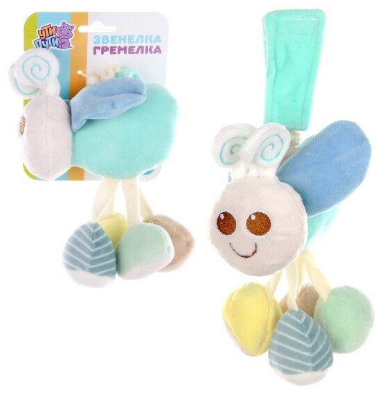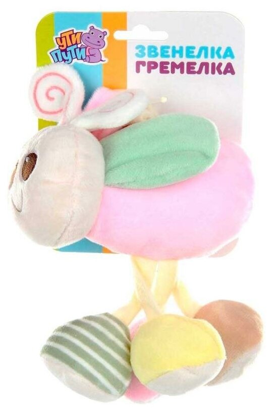 Type: hanging toy, effects: vibration, sound, educational elements: rattle, tactile inserts, material: textile