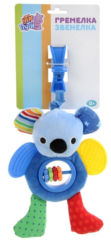 Type: hanging toy, effects: vibration, sound, educational elements: rattle, teether, tactile inserts, material: plastic, textile