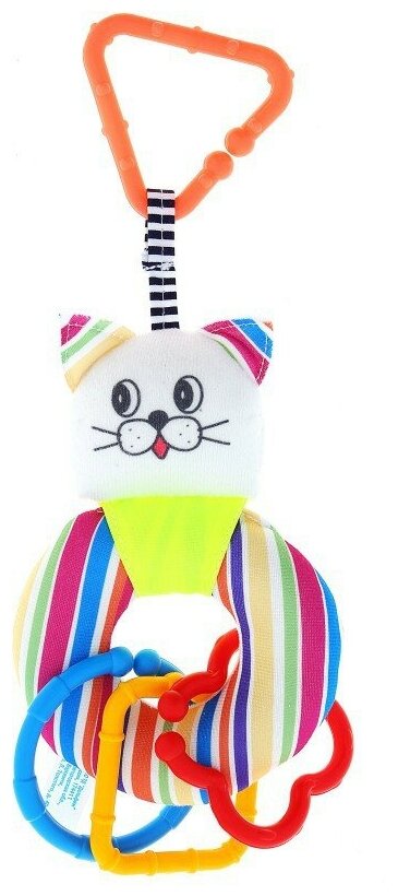 Type: hanging toy, effects: sound, educational elements: rattle, tactile inserts, material: plastic, textile