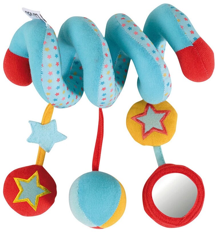 Type: stretching, effects: sound, educational elements: mirror, rattle, tactile inserts, rustling and crispy elements, material: textile