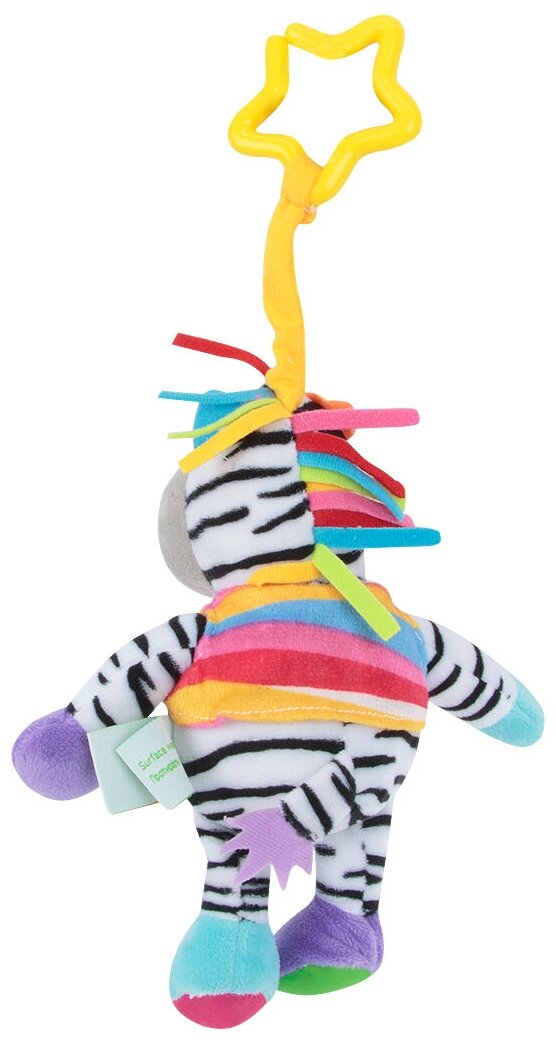 Type: hanging toy, effects: sound, educational elements: squeaker, rattle, tactile inserts, material: textile