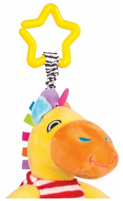 Type: hanging toy, effects: sound, educational elements: squeaker, rattle, tactile inserts, material: plastic, textile