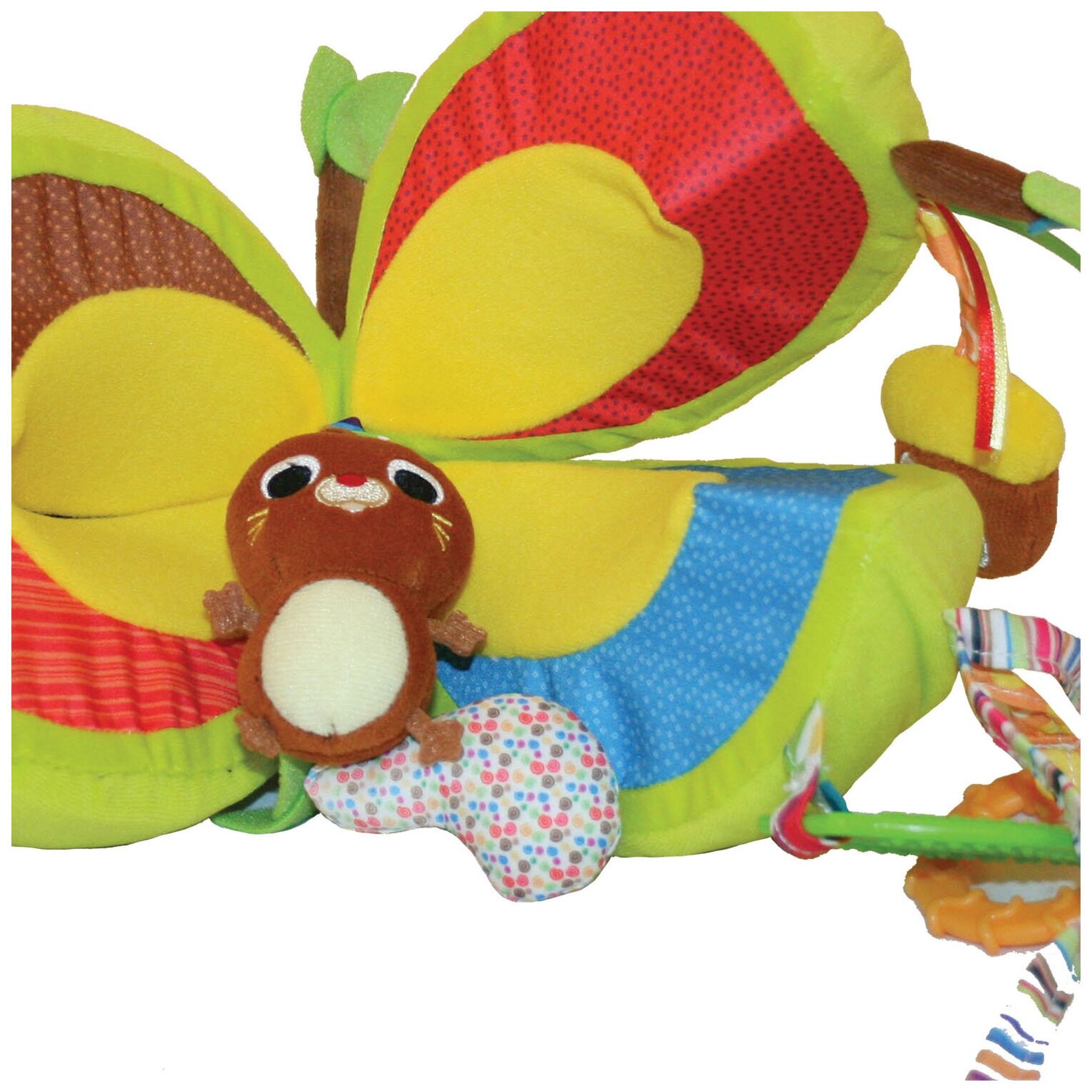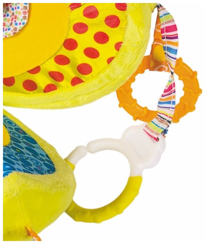 Type: hanging toy, effects: vibration, sound, educational elements: mirror, rattle, teether, tactile inserts, rustling and crunchy elements, material: plastic, textile