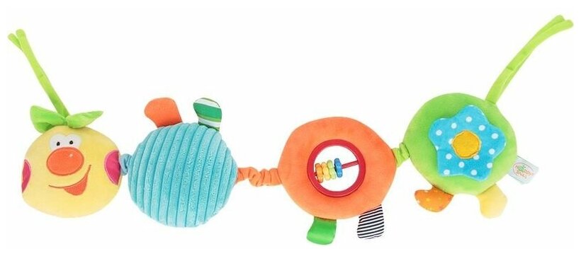 Type: stretching, effects: vibration, sound, developing elements: squeaker, rattle, tactile inserts, rustling and crunchy elements, material: plastic, textile