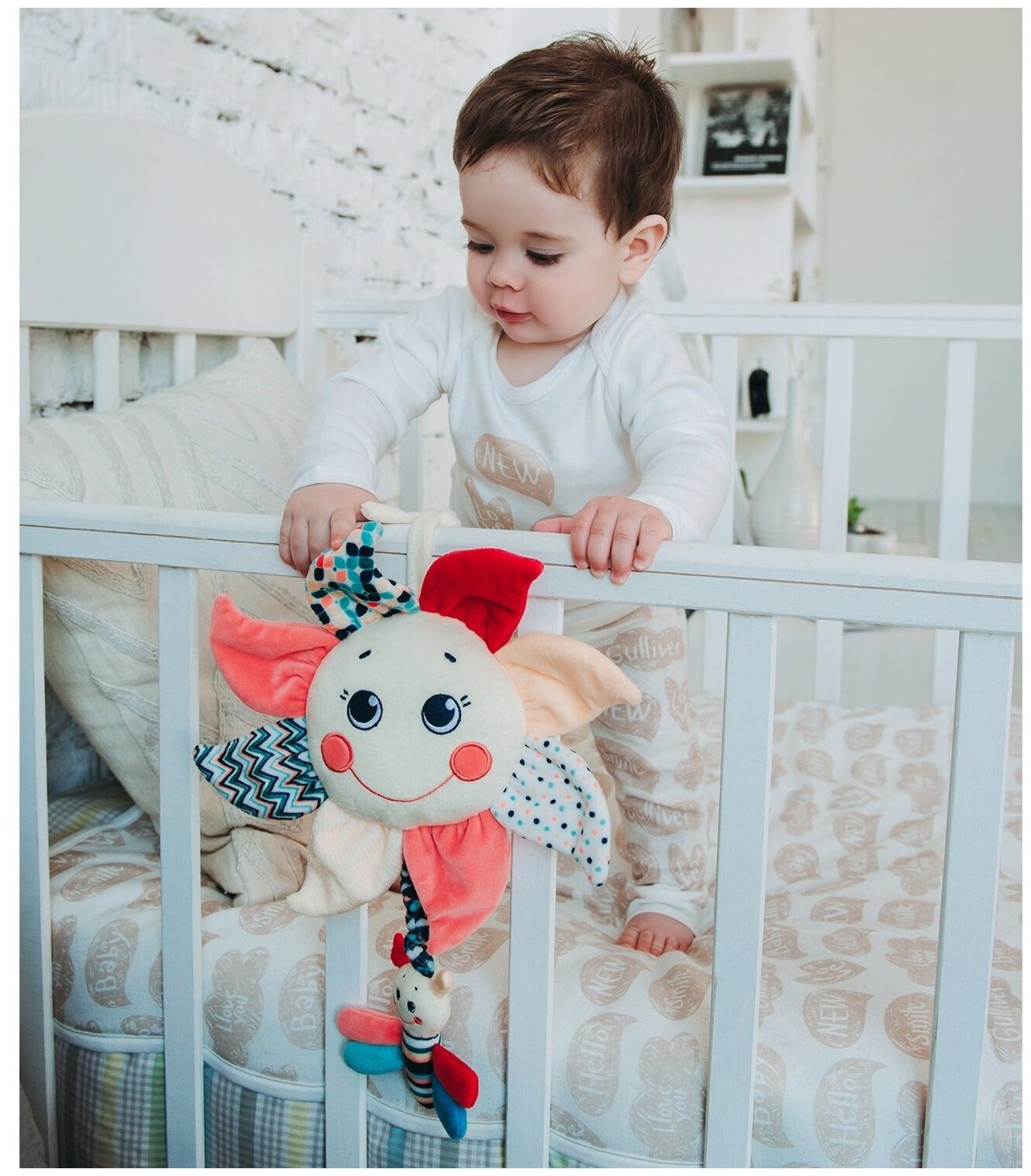 Type: hanging toy, effects: vibration, sound, educational elements: rustling and crunchy elements, material: textile